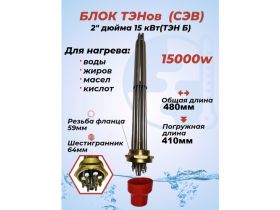 Блок ТЭН 15 кВт (СЭВ) 2 дюйма 59мм для котла 102483186280