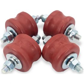 Комплект виброопор изготовленых из высококачественного материала, разработанного на заказ; с учетом самых жестких требований безопасности и долговечности. Материал устойчив к атмосферным воздействиям, к углеводородам, жирам органического происхождения, моющим и чистящим средствам на кислотной и щелочной основе, спиртам, химическим основаниям, ультрафиолетовому излучению.