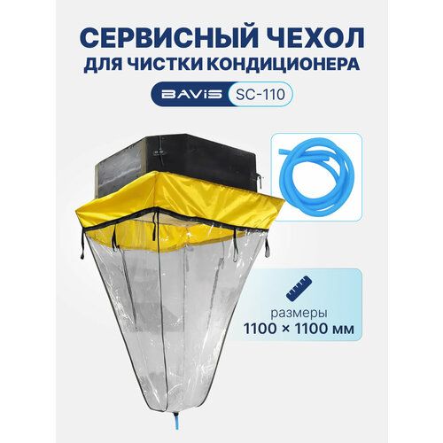 Сервисный чехол для кондиционера BAVIS SC-110 предназначен для очистки и мойки кассетного блока сплит-системы при сервисном обслуживании. Каркасная регулируемая конструкция. Подходит для блоков кондиционера кассетного типа габаритами до 1100х1100 мм. В комплекте дренажный, гофрированный шланг. Имеет нижнюю воронку с водоотводящим соплом для шланга.