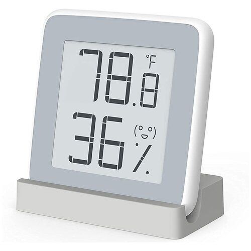 Контроль качества воздухаКачество воздуха – это важный фактор, влияющий на здоровье и комфорт членов семьи. Thermometer Hygrometer позволяет контролировать эти показатели. Температурный датчик чувствителен к изменениям температуры до десятой доли градуса ДисплейДанные отображаются на E-ink дисплее. Крупным шрифтом отображена температура и влажность воздуха. Вы сможете легко увидеть эти обозначения, даже если находитесь на большом расстоянии от прибора. Thermometer Hygrometer не только выводит числовые показатели влажности и температуры, но и оценивает комфортность этих показателей. Предусмотрено 6 обозначений-смайликов, которые показывают, что в помещении слишком жарко и сухо или холодно и сыро и т. д. Температура, близкая к 25 градусам, и влажность, близкая к 36%, оценивается как комфортная РазмещениеПредусмотрены 3 способа размещение прибора: с помощью подставки, двустороннего скотча и магнитного крепления. Вы можете поставить его на стол или полку, приклеить к стене или примагнитить к холодильнику. В комплекте предусмотрены двусторонний скотч, магнит и подставка