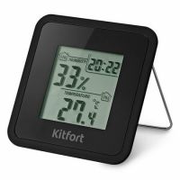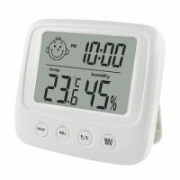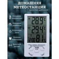 Часы-метеостанция умеет измерять температуру и влажность в помещении, питание от батарейки LR1130. На монохромном дисплее одновременно отображаются время, дата, день недели, температура и влажность. Встроенный будильник имеет функцию повтора.