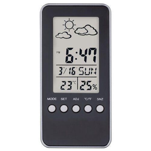 Домашние часы-метеостанция модели PF-S002A от широкого производителя электротоваров Perfeo обладают рядом полезных функций, которые способны облегчить жизнь пользователю. Устройство выполнено в минималистичном стиле из пластика. На дисплее отображается время, дата, температура и влажность.