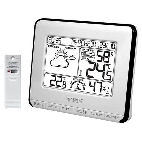 Домашняя метеостанция LaCrosse WS6818 предназначена для прогнозирования погоды, мониторинга температуры и влажности в доме и за его пределами, отслеживания уровня комфорта. Данные с внешнего беспроводного датчика передаются на основной блок с дисплеем на расстоянии до 90 метров. На цифровом черно-белом ЖК-дисплее отражаются данные температуры и влажности в помещении и на улице. Данные обновляются каждые 50 секунд.