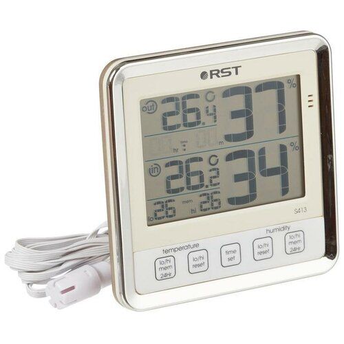 Цифровой термогигрометр психрометр с выносным датчиком температуры и влажности. Большой контрастный дисплей, сенсорные кнопки управления, высокочувствительный влагозащищённый термосенсер.