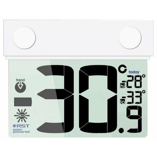 Цифровой термометр для любых типов окон. Большой прозрачный контрастный ЖК-дисплей, отображающий точную температуру воздуха на улице, тенденции изменений температуры, сигнализатор образования гололёда (ice alert), а также система автоматического запоминания минимальной и максимальной температур за текущие сутки (daily hi-lo). Специальная защита от UV-лучей, специальный светоотражающий матовый фильтр для лучшей видимости в ночное время, всепогодный влагозащищённый дисплей и корпус, высокочувствительный термо сенсор RST.