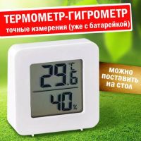 Термометр и гигрометр в одном устройстве. Универсальный измерительный прибор, который найдет применение в каждом доме. Бытовой термометр гидрометр - это датчик мониторинга условий жизни вашей семьи. Домашняя метеостанция показывает температуру и влажность воздуха. Датчик температуры и влажности встроенный и беспроводной. Цифровой термометр рекомендуется для использования педиатрами и подойдет для детской, а так же спальни. Можно разместить у окна для изменения температуры. Идеально подойдет для использования в террариумах, оранжерее, террариуме, инкубаторе, доме, офисных помещениях, автомобиле, школе, отеле, лаборатории, детском саду, библиотеке, заводе и в других местах где есть необходимость измерять температуру и влажность.Информация о температуре и комфортной влажности в квартире или офисе важны не меньше, чем данные о погоде. Если воздух в помещении слишком сухой, это обязательно скажется на самочувствии окружающих повышается утомляемость, снижается активность иммунной системы, гораздо проще подхватить простуду. Нередко сухость воздуха провоцирует и аллергические реакции. Чтобы поддерживать атмосферу в доме оптимальной, стоит воспользоваться помощью комнатного гигрометра, который вовремя подскажет, что пора подключать увлажнитель. Оценят точность показаний и люди, занимающиеся разведением птиц (такой девайс поможет поддерживать подходящие условия в инкубаторе) и любители экзотических животных, которым нужно контролировать условия в террариумах.