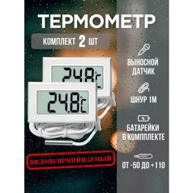 Прекрасный мини электронный цифровой термометр с выносным водонипроницаемым датчиком. Подходит, как для улицы, так и для помещения. Так же подходит в качестве термометра в машине, автомобиле, в аквариум, в террариум, в серпентарий, в инсектарий, в инкубатор, в баню, в холодильник, в морозильник, в морозильную камеру, в ванну, в сауну, в жилых зданиях, в квартире, в теплице, кулинарный, возможность использования для измерения температуры почвы, для воды, для напитков, для различных блюд, уличный цифровой, для домашнего пивоварения и самогоноварения. Данный градусник можно использовать как термометр для детского питания и молока. Для тех кто любит готовить будет незаменим термощуп кондитерский для отслеживания и поддержания оптимального температурного режима. При необходимости кулинарный щуп погружается в жидкость, при этом показатели t отображаются на дисплее. Термометром можно измерить температуру тела, еды, для регулировки температуры при варке сыра. Электронный градусник работает на батарейках. Термометр с выносным проводным датчиком - 1 метр.