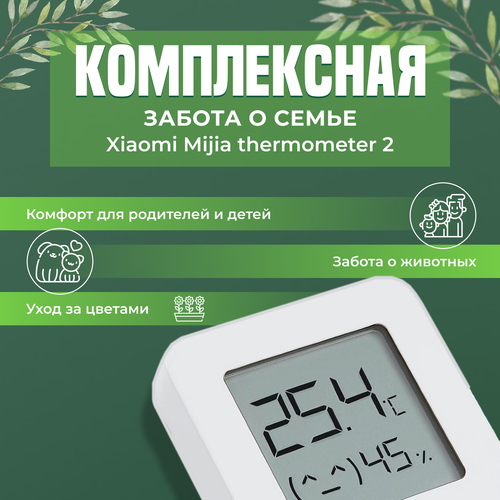 Компактный датчик температуры и влажности может служить самостоятельным термометром и гигрометром или работать в системе «умного дома», расширяя ее функциональность. Чувствует каждое изменение температуры и влажности. Помогает сделать жизнь комфортнее Температура и влажность в помещении непосредственно влияют на наше здоровье, резкие перепады могут привести к сухости в горле, жару, аллергии и просто неприятным ощущениям. Датчик температуры и влажности Mijia второго поколения создан специально для чуткого наблюдения за изменением микроклимата, а для еще лучшего контроля датчик можно включить в умный сценарий, создавая различные сочетания с другими устройствами. Автоматически включает кондиционер в жару С помощью Bluetooth-шлюза датчик температуры и влажности Mijia можно использовать в умных сценариях совместной работы с другими устройствами, чтобы взять микроклимат в помещении под полный контроль и вручную контролировать температуру и влажность для обеспечения самых комфортных показателей. В приложении Mi Home можно настроить сценарий, при котором по достижении определенной температуры автоматически включается или выключается кондиционер. Автоматическое включение обогревателя при похолодании В приложении Mi Home можно создать сценарий и для холодного времени года - при падении температуры ниже определенной отметки автоматически включается обогреватель. Автоматическое включение увлажнителя в сухом воздухе Следя за температурой, не следует забывать и о влажности воздуха. В приложении Mi Home можно настроить автоматическое включение или выключение увлажнителя при изменениях во влажности воздуха. Детский режим для особой заботы Особый детский режим работы датчика умеет автоматически присылать уведомления, если температура или влажность в помещении выходят за комфортные для ребенка пределы. На этот режим также можно настроить работу других устройств, позаботившись о здоровье и комфорте всех членов семьи. Сверхнизкое энергопотребление - одна батарейка на целый год работы Датчик температуры и влажности Mijia второго поколения собран из компонентов с низким потреблением энергии. Всего одной плоской батарейки им хватит на целый год работы, в течение которого у Вас всегда будут самые точные данные о температуре и влажности. Высокоточный датчик. Для чуткого измерения температуры и влажности Центром измерений Mijia Bluetooth Temperature and Humidity Sensor является высокоточный цифровой датчик от швейцарской компании Sensirion, способный быстро обнаружить мельчайшие изменения в состоянии окружающего воздуха - до 0.1°C температуры и 1% влажности, оперативно поставляя Вам самую последнюю информацию. Горизонтальная и вертикальная установка в любом удобном месте Датчик температуры и влажности Mijia второго поколения можно как поставить на тумбочку, стол или шкаф, так и приклеить на стену с помощью клейкой ленты. Кроме того, благодаря боковым отверстиям его можно повесить в машине, на рюкзаке, на растениях и вообще везде, где захочется. Наблюдение за домом. Для комплексной заботы о всей семье Создайте для детей самую здоровую атмосферу, для родителей - самую комфортную, для цветов - оптимальную, не оставив ни одно помещение без внимания. Хранение данных о температуре и влажности для отслеживания изменений Откройте приложение Mi Home и добавьте Mijia Bluetooth Temperat