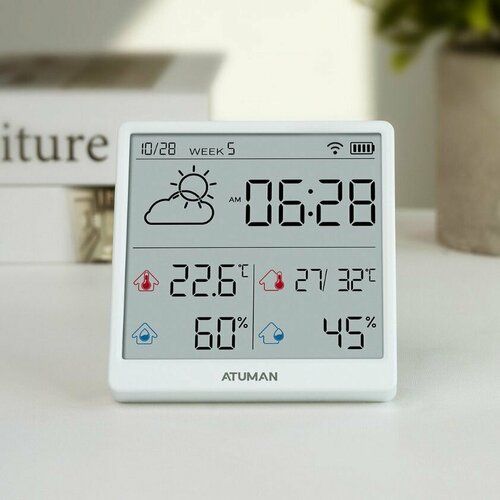 Гигрометр ATuMan Duka TH3 имеет WiFi соединение, благодаря чему он предоставляет точную и актуальную информацию о погоде. С обновлениями температуры и влажности на улице каждые 24 часа а за счет немедленного восстановления внутренних условий пользователи получают информацию об их окружении в режиме реального времени.