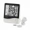 Цифровой термометр-гигрометр с большим дисплеем имеет выносной датчик. Показывает температуру и влажность внутри и снаружи помещения. Может запоминать абсолютного минимум и максимум температуры и влажности. К дополнительным функциям относятся часы, будильник и календарь. На обратной стороне имеется подставка для настольной установки, и отверстие для крепления на стену. В комплекте идет 1-шт батарейка ААА и инструкция на английском языке.