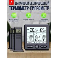 Цифровой термометр с внешним радиодатчиком до тридцати метров, с возможностью подключения выносного термосенсорного устройства работающего в диапазоне температур 50.70 С. Термометр показывает температуру в комнате и на улице, кроме того, содержит в себе часы, будильник и удобный календарь. Всю информацию отображает ЖКдисплей с подсветкой. Функция памяти температур ведет полезную статистику максимальных и минимальных уровней. Применение выносного термосенсорного устройства длина кабеля 2 метра позволит точно определить температуру не только воздуха, но и воды, почвы, химических жидкостей и т. п. Также, пользователь будет заблаговременно предупрежден о возможном гололеде на улице при температуре 2.1 С на дисплее появится специальный индикатор. Кабель идущий от термосенсора легко прокладывается через стеклопакет окон. Двойной будильник работающий режиме рабочие и выходные дни с тоновым сигналом с возможностью функции дремать. На дисплее Вы найдете и удобный календарь, где будет отображаться число, месяц и текущий день недели.