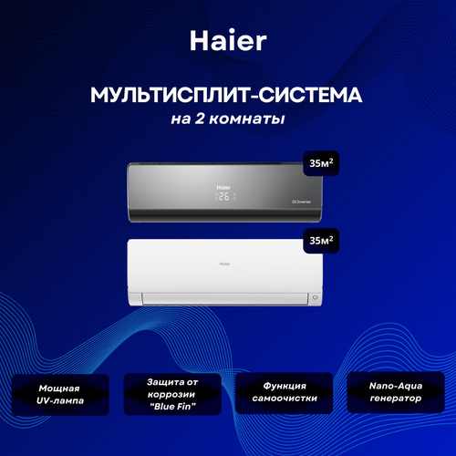 НАЙТИ ВЫГОДНЕЕ - Мультисплит-система Haier Lightera AS12NS6ERA-B + Flexis SM AS35S2SF2FA-W / 2U40S2SM1FA на 2 комнаты 35+35 м²