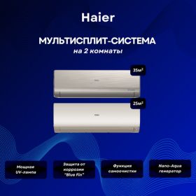 НАЙТИ ВЫГОДНЕЕ - Мультисплит-система Haier Lightera AS12NS6ERA-G + Flexis SM AS25S2SF4FA-G / 2U40S2SM1FA на 2 комнаты 35+25 м²