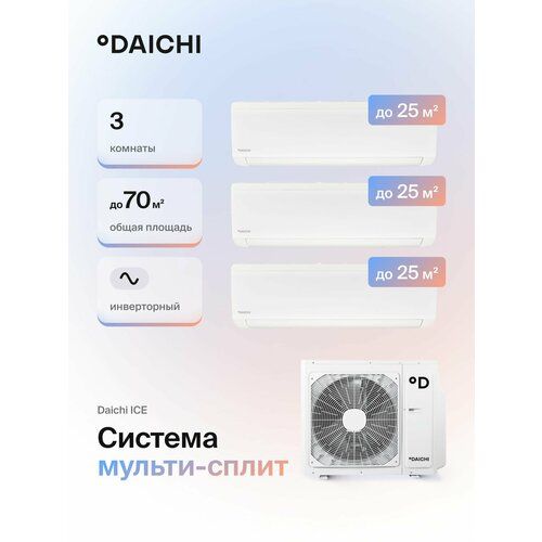 НАЙТИ ВЫГОДНЕЕ - Мульти сплит-система для 3-х комнат Daichi DF70A3MS1R/ICE25AVQS1R-1*3 (25 кв. м. + 25 кв. м. + 25 кв. м.)