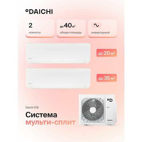 НАЙТИ ВЫГОДНЕЕ - Инверторная мульти сплит-система на 2 комнаты (20м2+35м2) Daichi DF40A2MS1R/ICE20AVQS1R-1/ICE35AVQS1R-1