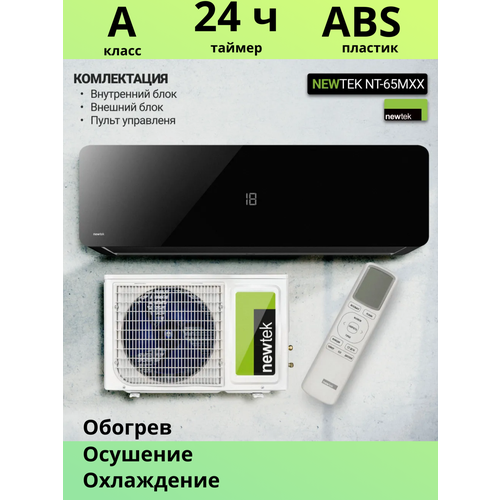 НАЙТИ ВЫГОДНЕЕ - Сплит-система Newtek NT-65M07 домашний кондиционер настенный для 20 м2, скрытый LED дисплей, черный глянец