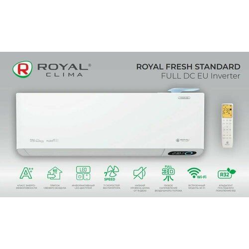 Сплит-система инверторного типа Royal Clima FRESH FULL DC EU INVERTER RCI-RF35HN – это идеальное решение для комфортного климата в вашем доме или офисе. Этот настенный кондиционер предлагает высокую энергоэффективность и безшумную работу, что делает его отличным выбором для любого помещения.