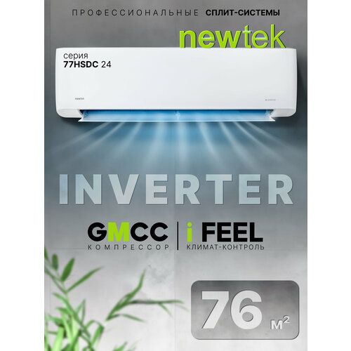 Сплит-система NewTek NT-77HSDC24 — это оптимальный выбор для тех, кто ищет мощный инверторный кондиционер с высокой энергоэффективностью, интеллектуальными функциями и качественной очисткой воздуха. Экономичность, надёжность компрессора GMCC, 4D-обдув, фильтр серебряных ионов и функция I-Feel делают эту модель универсальным решением для дома, квартиры-студии или офиса площадью до 76 квадратных метров. Инвестируя в эту сплит-систему, вы получаете не просто прохладу, а здоровый, стабильный и персонализированный микроклимат на долгие годы.