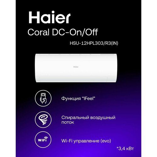 НАЙТИ ВЫГОДНЕЕ - Сплит-система настенная Haier HSU-12HPL303/R3 Coral on/off