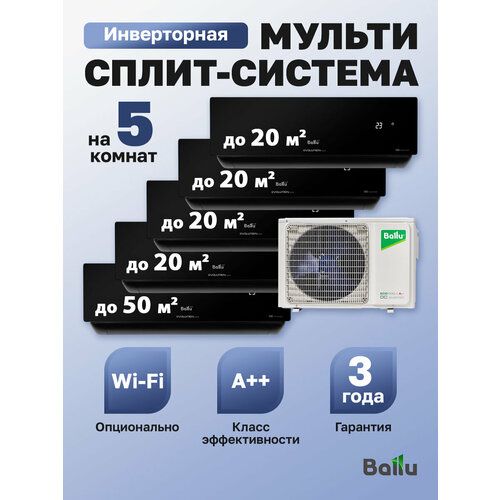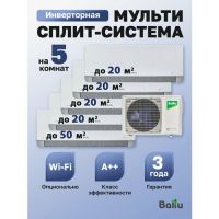 Мульти сплит-система Ballu FREE MATCH состоит из наружного блока BA5OI-FM/out-42HN8/EU, четырех внутренних блоков BSUI-FM/in-07HN8/EU_BL и внутреннего блока BSUI-FM/in-18HN8/EU_BL.