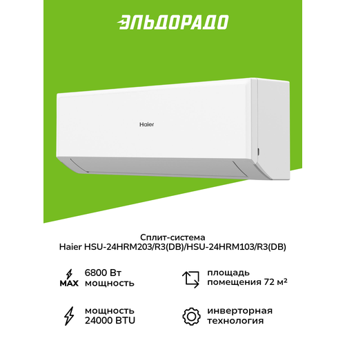 Умная сплит-система (инверторная) Haier HSU-24HRM203/R3(DB)/HSU-24HRM103/R3(DB) состоит из внешнего и внутреннего блоков, последний из которых отличается компактностью. Модель может управляться с помощью ДУ пульта из комплекта или через смартфон при подключении по сети Wi-Fi. Доступны режимы нагревания, быстрого и стандартного охлаждения, осушения, авторестарта и автоочистки. При ночной программе снижается уровень шума, программа Комфортный сон автоматически регулирует параметры. Предусмотрена опция размораживания внешнего блока.