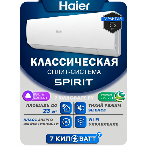 Сплит-система Haier Spirit HSU-07HSL103/R3-W - это современное и функциональное решение для создания комфортного микроклимата в помещении. Мощность охлаждения составляет 2100 Вт, а мощность обогрева - 2200 Вт. Это позволяет эффективно поддерживать заданную температуру в помещении площадью до 23 м2. Сплит-система оснащена встроенным Wi-Fi, что позволяет управлять устройством дистанционно через приложение на смартфоне. Это особенно удобно в случае, если вы находитесь вне дома и хотите проверить, как работает кондиционер. Кондиционер Haier Spirit оснащен антибактериальным и воздушным фильтрами, а также фильтром тонкой очистки. Это обеспечивает не только эффективное охлаждение или обогрев, но и поддержание здорового микроклимата в помещении. Устройство поддерживает работу в режиме осушения, что позволяет эффективно бороться с повышенной влажностью. Сплит-система поддерживает работу в экосистемах Умного дома, таких как Яндекс, Умный дом Sber, VK. Это позволяет интегрировать устройство в систему "Умный дом" и управлять им с помощью голосовых помощников Google Assistant, Xiao Ai, Алиса, Маруся, Салют. Устройство имеет 5 скоростей работы, что позволяет настроить кондиционер под свои индивидуальные потребности. Максимальный расход воздуха составляет 500 м3/час, что обеспечивает быстрое и равномерное охлаждение или обогрев помещения. Вес внутреннего блока составляет 7,1 кг, а вес наружного блока - 20,9 кг. Это делает устройство легким в установке и удобным в использовании. В комплект поставки входят внутренний и наружный блоки сплит-системы, пульт дистанционного управления, инструкция по эксплуатации и монтажу.