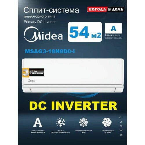 Сплит-система Midea MSAG3-18N8D0-I/MSAG3-18N8D0-O серии Primary Inverter предназначена для обслуживания помещений с площадью 50 м2. Базовая эффективность и производительность позволяет качественно выполняет все функции.
