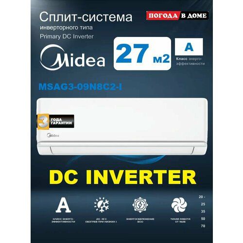 Сплит-система Midea MSAG3-09N8C2S-I/MSAG3-09N8C2S-O серии Primary Inverter предназначена для обслуживания помещений с небольшой площадью. Базовая эффективность и производительность позволяет качественно выполняет все функции. Прекрасно подойдет для установки в кабинете, спальне или гостиной площадью до 25 м2.