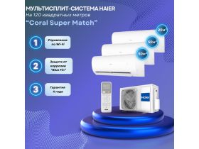 Мультисплит-система Haier Coral Super Match 2 x AS25PS1HRA-M + AS50PS1HRA-M / 5U90S2SS5FA на 3 комнаты 25+25+50 м2 103136159402