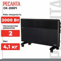 2000Вт, 25кв. м, тип управления механический, установка напольная, настенная, регулировка температуры, белый