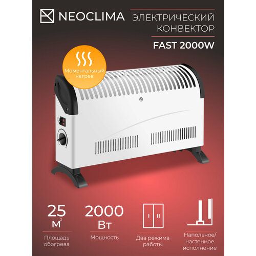 Конвектор NeoClima Fast 2000, 2 кВт, 25 м², ножки в комплекте, белый