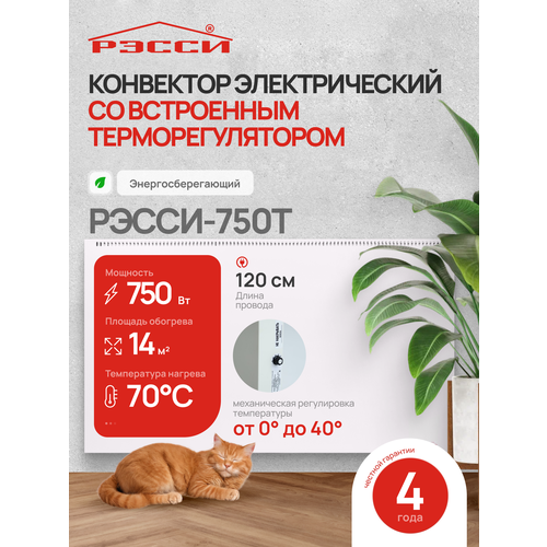 НАЙТИ ВЫГОДНЕЕ - Конвектор электрический для отопления рэсси 750Т с терморегулятором (14 м²) 750Вт
