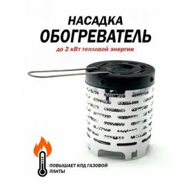 Высота насадки 14,7 см , диаметр насадки 12 см, толщина стенки 1 см, толщина верхней части 2 см. Длина ручки 15 см , ширина ручки 3,5 см. Материал насадки-обогревателя: нержавеющая сталь. Проходя через разогретую насадку, газы нагреваются до 700-900 градусов . В камере сгорания при интенсивном перемешивании происходит взаимодействие газов с высокотемпературными продуктами сгорания топлива или перегретым паром. Температура газов повышается до 800-1200 градусов , что обеспечивает дожигание токсичных органических компонентов до практически безвредных соединений. Обогрев производится за счет более полного сгорания газа дожигателем и равномерному распределению тепла по поверхности насадки. Конвертер для наружной газовой плиты, для пикника. Дожигатель предназначен для газовых горелок и плит, в качестве теплоизлучающего элемента для обогрева и дожигания газа в небольших помещениях, палатках. Благодаря множествам отверстиям на насадке тепло быстро распространяется по помещению (палатка, лесной охотничий домик, дачи и т. д.). Предназначен для повышения КПД вашей портативной плиты и использования ее в качестве обогревателя, который согреет вас в самые прохладные вечера. Устанавливается на варочные упоры работающей плиты или горелки. Подходит для большинства настольных газовых плит и горелок. Изготовлен из нержавеющей и холодокатаной стали. Горелки-насадки имеют универсальное крепление, и подходят практически для всех туристических плиток. Данная насадка обогреватель иначе дожигатель имеет такую поверхность благодаря которой Вы сможете подогреть еду в кастрюльке, скипятить чайник или согреть воду. Так же можно на насадке согреть консервированную пищу (типа сухого пайка).