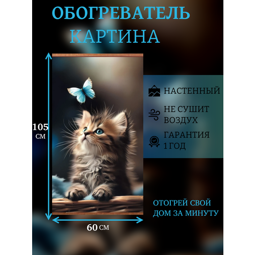 НАЙТИ ВЫГОДНЕЕ - Инфракрасный обогреватель настенный пленочный Котенок и бабочка / Обогреватель картина на стену гибкий Домашний очаг