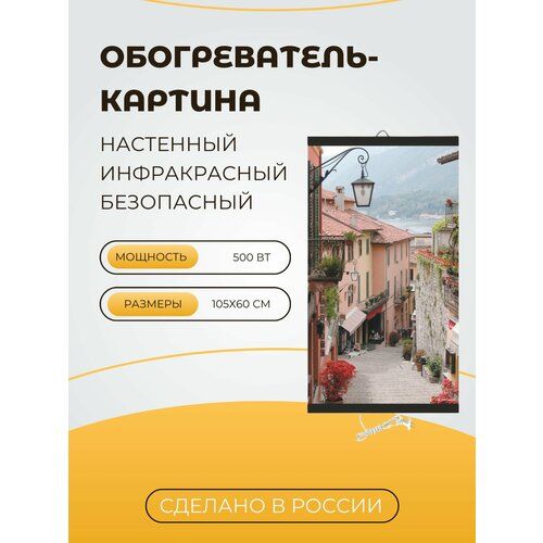 Картина-обогреватель "Курортный Городок" представляет собой полноценную интерьерную картину на деревянном подрамнике. При этом она работает как зональный обогреватель для дополнительного и основного обогрева помещений.
