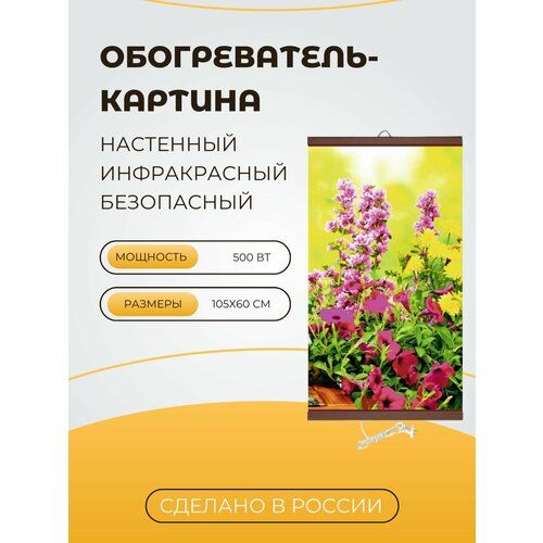 Картина-обогреватель "Цветы" представляет собой полноценную интерьерную картину на деревянном подрамнике. При этом она работает как зональный обогреватель для дополнительного и основного обогрева помещений.