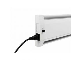 Плинтусный обогреватель Mr.Tektum является инновационным и мобильным отопительным прибором для лоджий, балконов, холодных стен в квартирах и загородных домах, зимних садов и теплиц. Модель Smart-Roll является продолжением серии моделей Smart. С помощью ручки регулировки мощности вы можете выбрать нужную, именно вам, мощность прибора в диапазоне от 0 до 100%. Плинтусный обогреватель Mr. Tektum можно использовать, как отдельный прибор отопления, так и объединить несколько приборов в группу, с одной точкой подключения к электрической сети. Соединение обогревателей серии Smart-Roll осуществляется с помощью соединительного шнура (IEC C13-C14 не входит в комплект поставки). Управление каждым прибором осуществляется отдельно. Максимальная длина объединенной группы приборов не должна превышать 5,5 метров погонных. Подключение питания - слева. Плинтусный обогреватель Mr. Tektum благодаря своей уникальной форме, способен добиться максимального прилипания теплого воздуха к холодной стене, тем самым обеспечивая быстрый прогрев стен, равномерную температуру по всему объему помещения и формирование теплового экрана по всему периметру. Невысокая мощность прибора совместно с прогретыми стенами позволяют значительно экономить электроэнергию. -Решает проблемы: Сырых и холодных стен Борется с грибком Убирает конденсат на окнах Препятствует прохождению холодного воздуха при панорамном остеклении Не пересушивает воздух Не поднимает пыль -Способ установки: На стену над/вместо декоративного плинтуса (рекомендуется) На ножки (входят в комплект поставки) -Защита Корпус прибора изготовлен из ударопрочного алюминия, окрашенного порошковым методом. Блок управления имеет датчики, установленные на нагревательном элементе, которые отслеживают работу при затрудненном конвективном потоке или его отсутствии. Класс защиты от поражения электротоком — I Степень защиты IP20 Подключение питания - слева