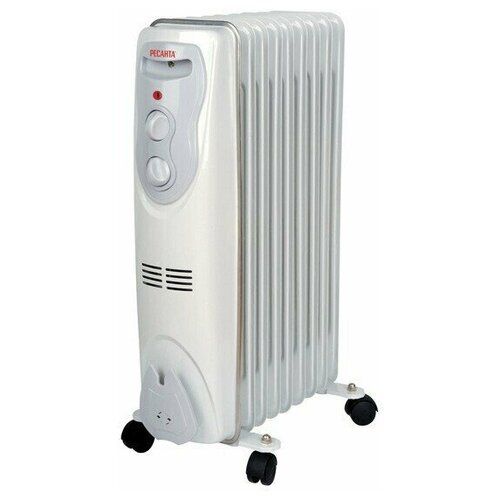 НАЙТИ ВЫГОДНЕЕ - Масляный радиатор РЕСАНТА ОМ-9Н, 2 кВт, 25 м², колеса в комплекте, белый/серый