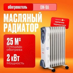 9 секций: Ресанта ОМ-9А оснащен 9 секциями, что позволяет равномерно распределять тепло по комнате, идеально подходит для помещений площадью до 25 м².