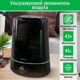 30W, ультразвуковой, ултрафиолетовая UVC лампа, объем -4,5л, верхний залив, производительность до 350мл/час, работа до 36ч, керамический фильтр, автоотключение без воды, плавная регулировка мощности, площадь обслуживания до 45м2. Увлажнитель воздуха MT-HF4701A бесшумно нормализует уровень влажности в помещении до идеального уровня. Вы почувствуете разницу очень скоро, ведь от уровня влажности зависит и степень вашей работоспособности, и качество отдыха. Плавная регулировка интенсивности увлажнения позволяет создавать необходимый именно вам микроклимат, не только дома, но и в офисе. MT-HF4701A оснащен вместительным 4,5-литровым резервуаром. При максимальной производительности 350 мл/ч, такой объем позволяет поддерживать комфортные условия в помещении на протяжении 36 часов Удобное и простое управление осуществляется при помощи вращаемого регулятора со светодиодной индикацией работы и нехватки воды. Кроме того, вы можете использовать картридж арома-фильтра для насыщения воздуха любимым ароматом. Увлажнитель для дома, увлажнитель ароматизатор, очиститель воздуха. при работе снижает температуру окружающего воздуха за счет распыления мелкодисперсного водяного тумана. Встроенный вентилятор помогает равномерно распределить поток увлажненного воздуха охватывая все пространство помещения. Прибор для охлаждения