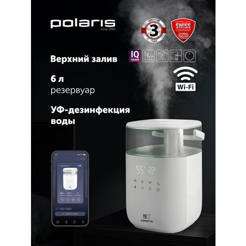 НАЙТИ ВЫГОДНЕЕ - Увлажнитель воздуха с уф лампой Polaris PUH 6060 WIFI IQ Home , белый