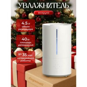 Увлажнитель воздуха настольный с диффузором и очисткой с помощью ультрафиолетового излучения УФ-C для оптимального комфорта. Емкость резервуара - 4,5 л, производительность до 350 мл пара в час, автоматический режим для предотвращения чрезмерной влажности, управление влажностью одним нажатием.