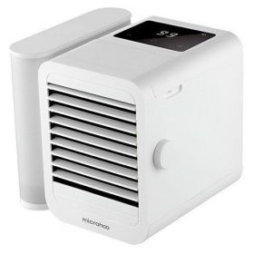 Microhoo Personal Air Cooler MH01RU - персональный кондиционер, который охлаждает воздух используя холодную воду. Для ускорения охлаждения вы можете поместить ёмкость с водой в холодильник или добавить в неё кубики льда. Резервуар вмещает в себя 1 литр жидкости и его хватает примерно на 5 часов работы. Питание устройства обеспечивается через интерфейс Type-C, благодаря чему кондиционер может работать от любого источника питания - компьютер, блок питания, розетка, внешний аккумулятор и т. д.