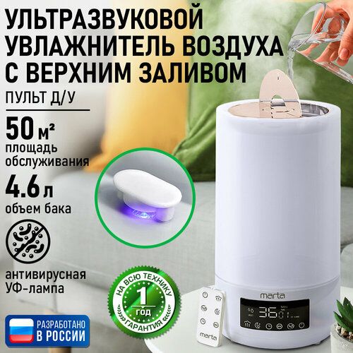 НАЙТИ ВЫГОДНЕЕ - Увлажнитель воздуха ультразвуковой MARTA MT-2696 верхний залив антивирусная УФ - лампа белый/медный хром