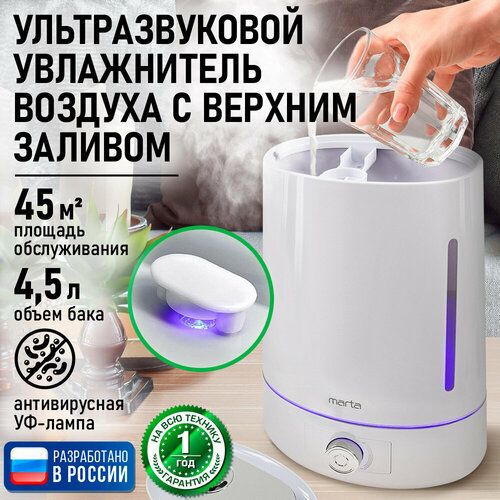 НАЙТИ ВЫГОДНЕЕ - Увлажнитель воздуха ультразвуковой MARTA MT-HF4701A верхний залив антивирусная УФ - лампа белый/серебро