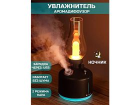 Увлажнитель воздуха ультразвуковой 3 в 1, Аромадиффузор с подсветкой, Ночник для дома, Ретро лампа, Черный 4483386059
