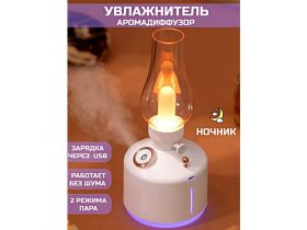 Увлажнитель воздуха ультразвуковой 3 в 1, Аромадиффузор с подсветкой, Ночник для дома, Ретро лампа, Белый 4483386060