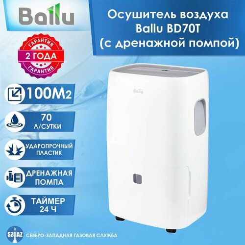 НАЙТИ ВЫГОДНЕЕ - Профессиональный осушитель воздуха Ballu BD70T (100 м2) с дренажной помпой, мобильный напольный осушитель воздуха Балу