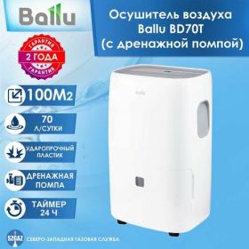 Осушитель воздуха Ballu BD70T - мощный напольный осушитель, который благодаря своей высокой производительности может использоваться на строительных площадках, производственных или складских помещениях.