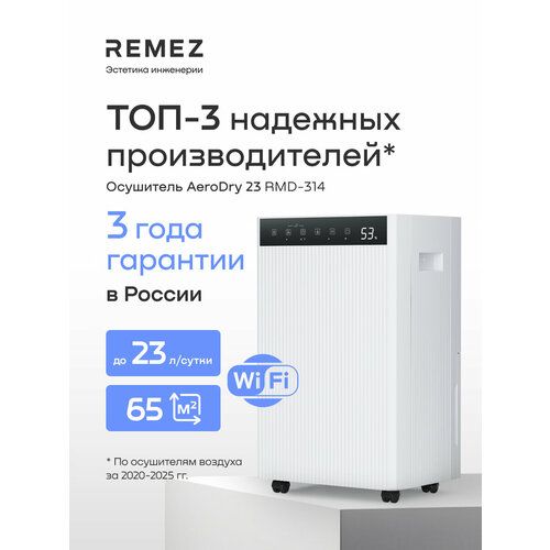 НАЙТИ ВЫГОДНЕЕ - Осушитель воздуха REMEZ, AeroDry Smart, 23л/сутки, 65м², Wi-Fi управление, белый